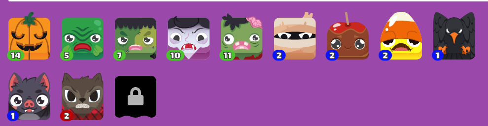 Apart from the Blooks in the Spooky Pack, there are other Spooky Blooks that use the same Spooky background. There are 11 of these Blooks that are not part of the pack. They include 3 retired Blooks, 5 Blooks from the Contest of Candy event, and 3 unreleased Blooks.